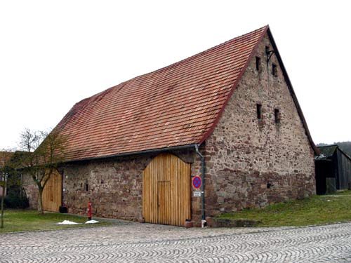 Die Zehntscheune wurde im Jahre 1584 erbaut. In der Zehntscheune ließen die Grundherren den Zehnten Teil der Ernte als Abgabe sammeln (Heu, Getreide, Feldfrüchte...). In den 70igern wurde wegen Einsturzgefahr darüber nachgedacht, die Scheune abzureißen. Dies wurde aber wieder verworfen und so dient sie heute für Festivitäten und zur Unterstellung des Feuerwehrautos. |